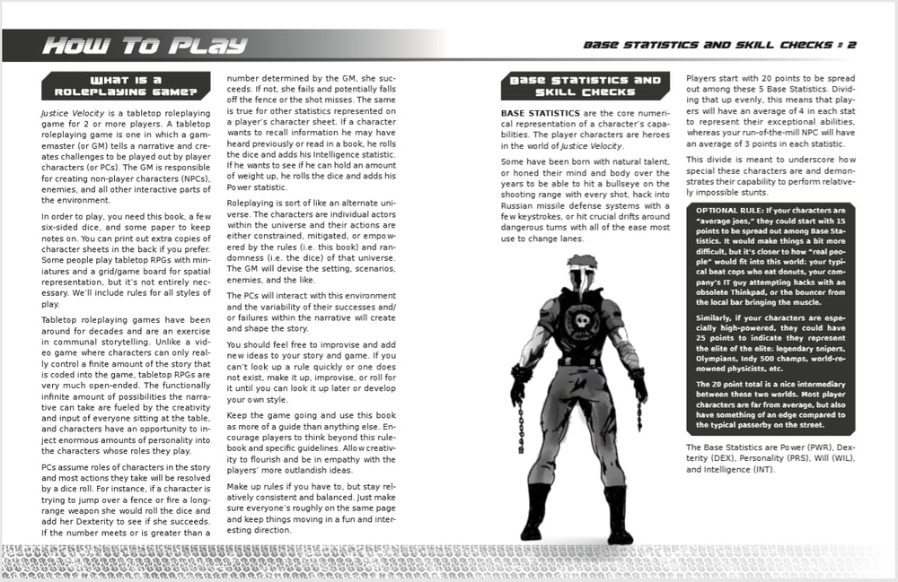 Justice Velocity is an action movie themed tabletop role-playing game for 3+ players.