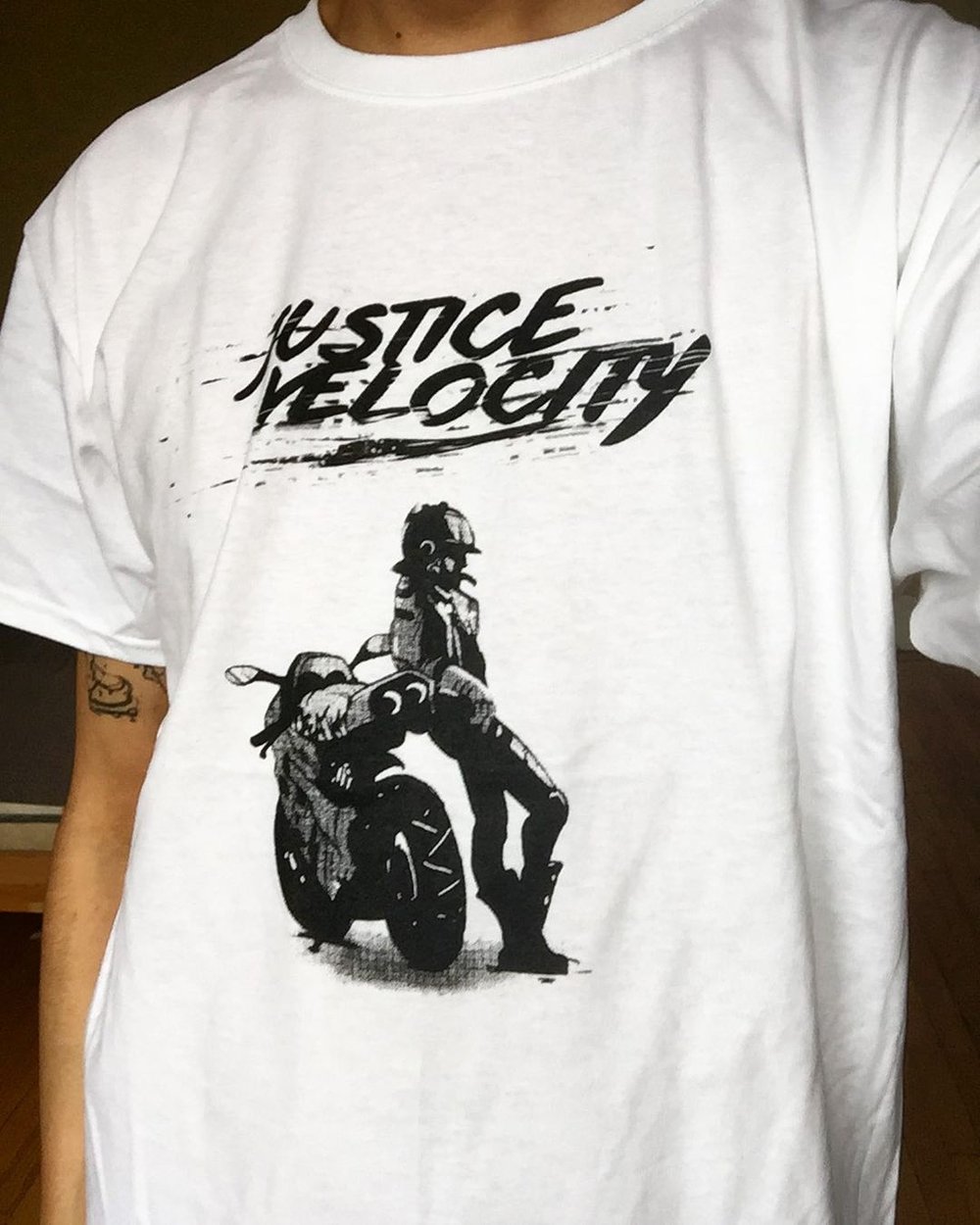 Rep your love for Justice Velocity with this punk band-styled Motorcycle Maven T-shirt!